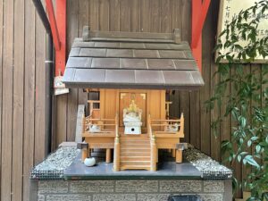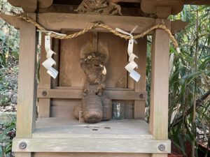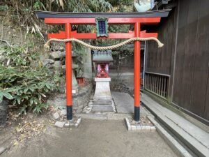 鳥居にしめ縄が掛けられており社務所付近に鎮座しています。