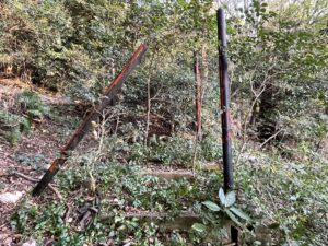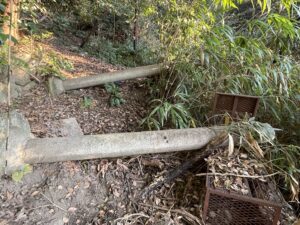 その先に無残にも頭のとれた石キツネの姿がありました。