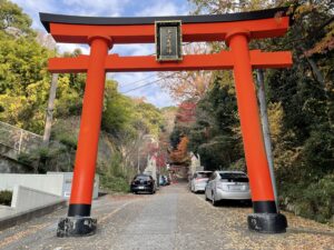 道路に面したところに一の鳥居があり、そこから長く続く急勾配の坂が始まります。