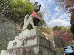 狛犬ではなくキツネということは、この先に稲荷神社があるという証です。