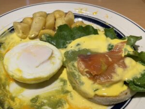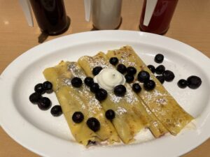 メニューはミートエッグス、オムレツ、エッグスベネディクト、パンケーキ、クレープ、ワッフル等々種類が豊富です。