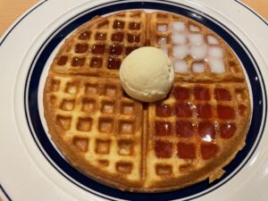 ワッフルはシロップが染み込みやすいのでシロップが強調されて、より美味しくいただけます。