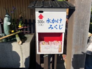 水に濡らすと文字が浮かび上がってくる一回300円のおみくじです。
