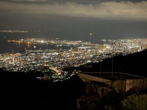摩耶山より東側、六甲手テラスより西側に位置していることで、神戸から大阪湾の夜景がバランスよく展開。