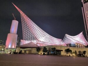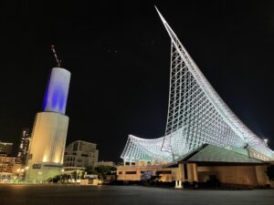 ポートタワーのプロジェクトマッピングが終わると、すぐに神戸海洋博物館とのコラボ「光と音の演出」が始まります。