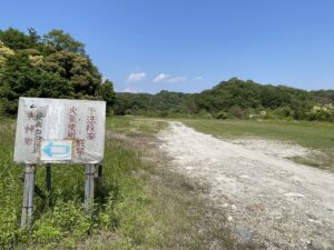 100メートル程いくと広場があるので、そこに車をとめます。