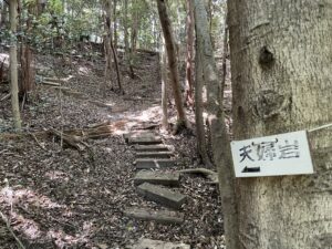 広場の手前の左に登山口があるのでそこから上っていきます。