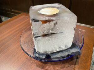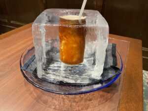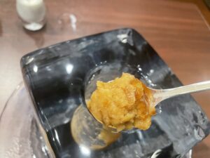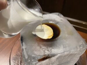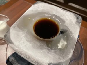 最後は器の側面をスプーンで削りコーヒーシャーベットをいただきます。