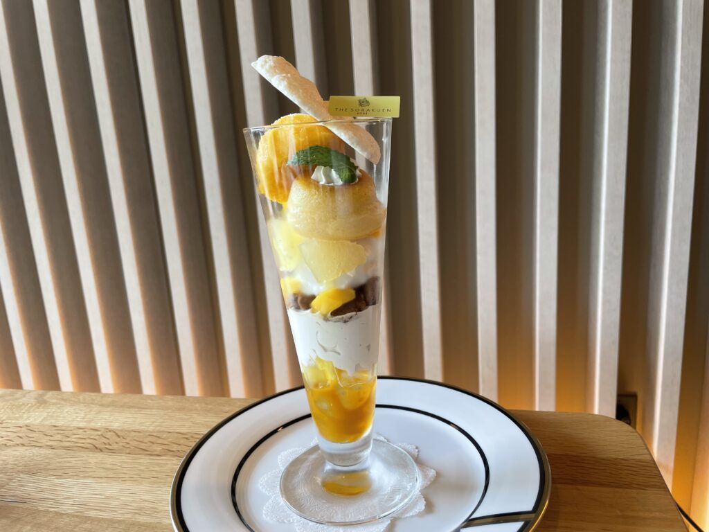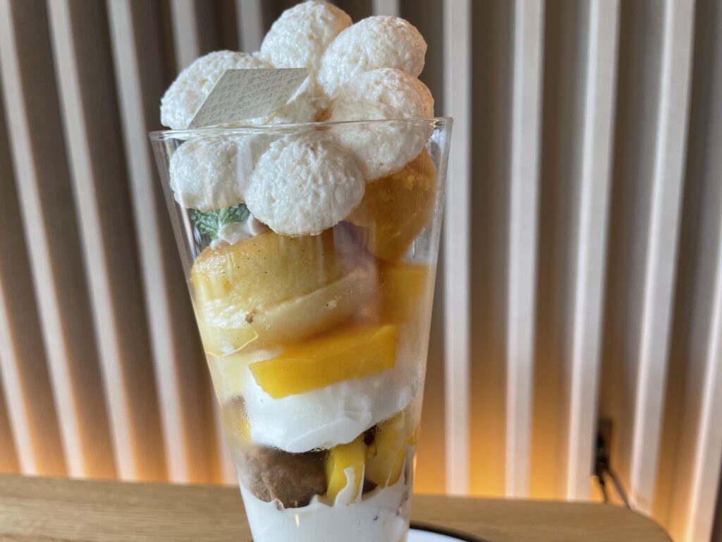 マンゴーやパイナップルなど夏のフルーツをふんだんに使用した贅沢パフェ。