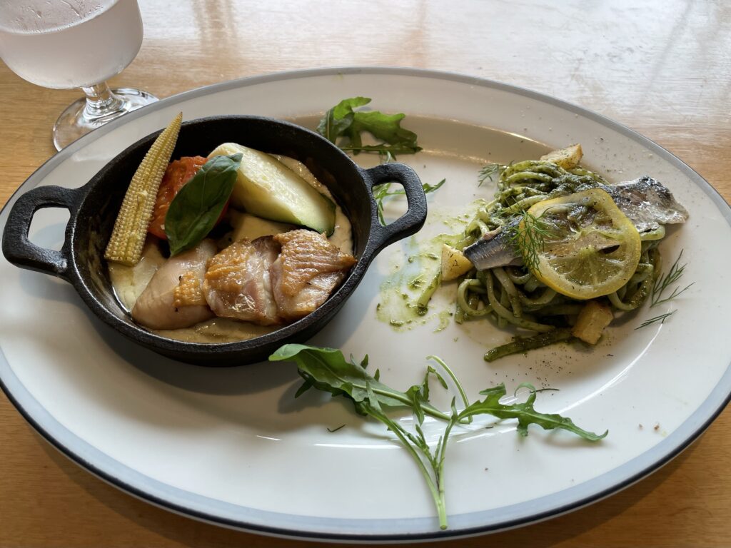 もっちりした自家製生パスタでさっぱりした味付けです。