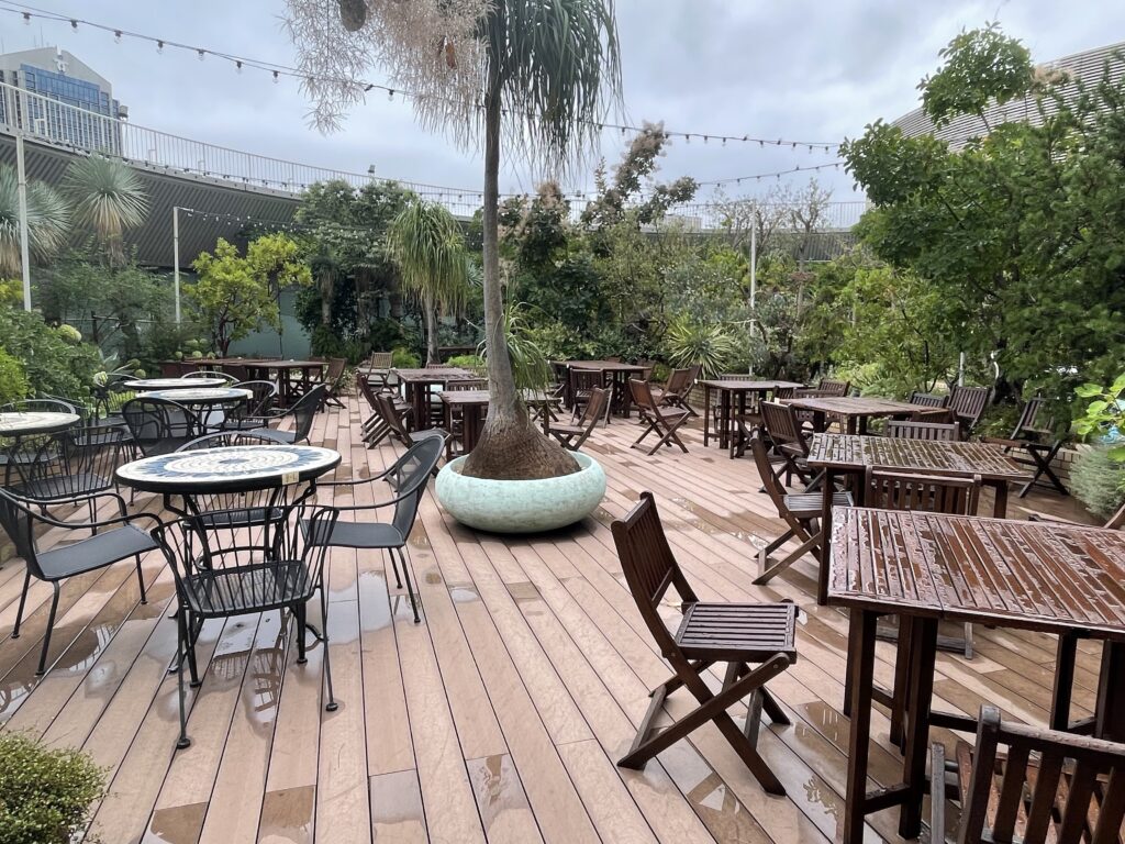 国際会館の11階、緑に囲まれたテラス席でのイタリアン。