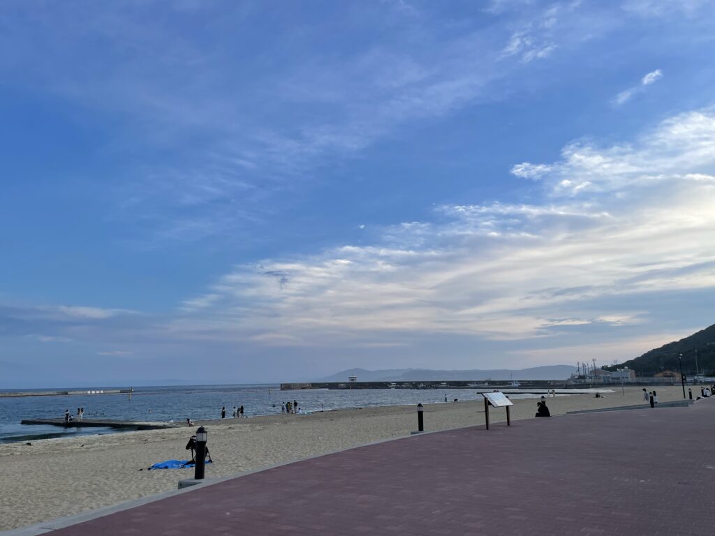 特に2Fは潮風に吹かれながら須磨海岸の景色をパノラマで見渡せるようになっており、西の方に振り向けば六甲山系の鉢伏山を眺望することができます。