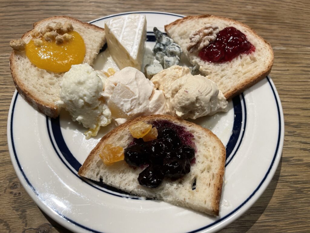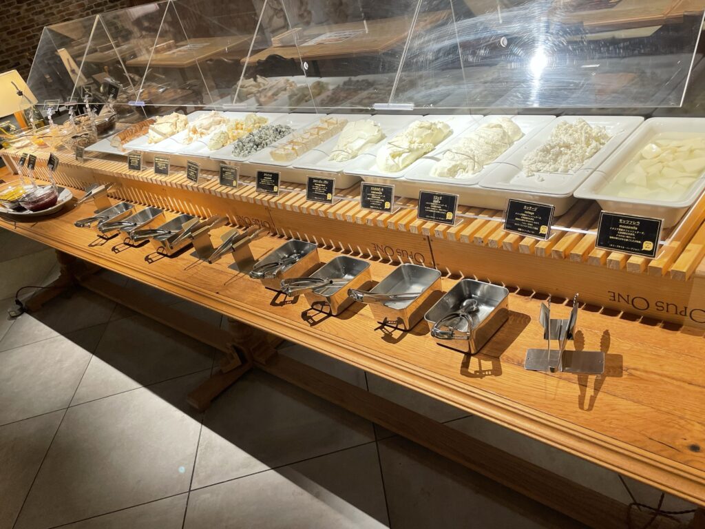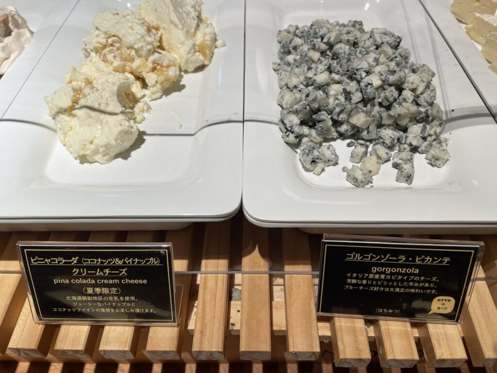 食べ放題のチーズは10種類くらいあるので、料理が来る前に全種類を食べ比べして自分好みのチーズを探します。