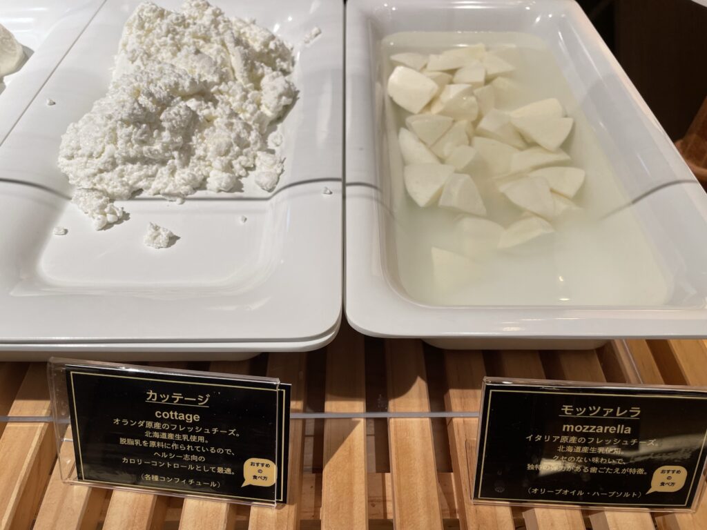 メイン料理を注文すると、+990円で厳選されたフレッシュチーズがブッフェ形式で食べ放題になります。