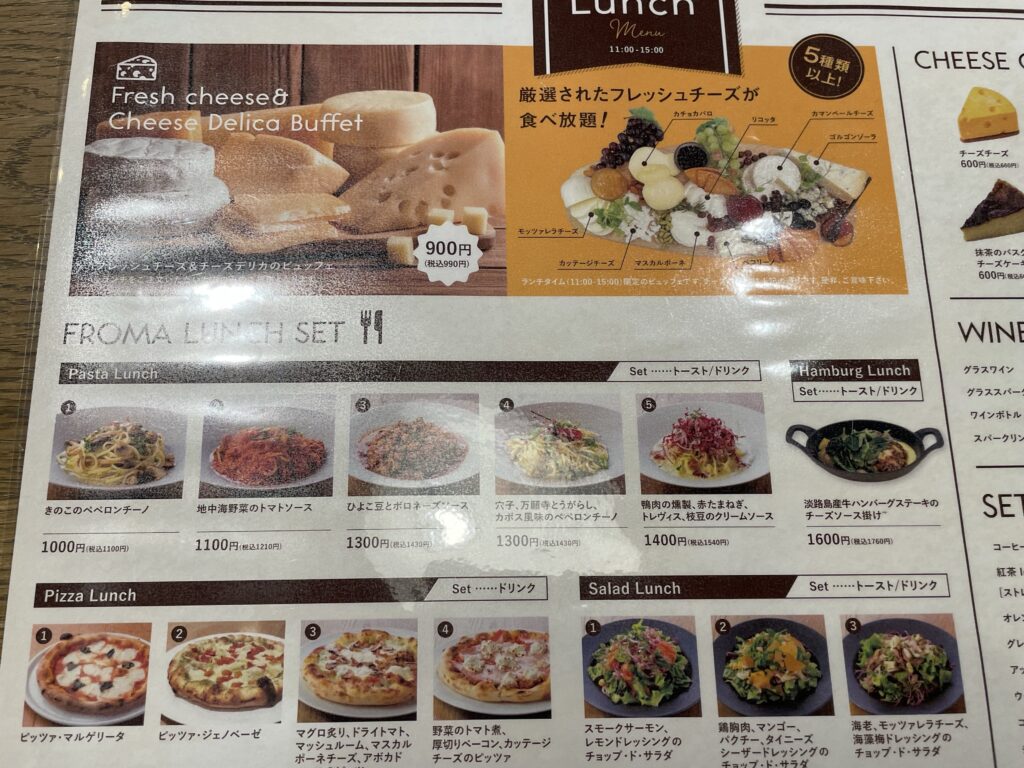 ランチタイムではメイン料理にブッフェ形式のチーズ食べ放題をプラス。