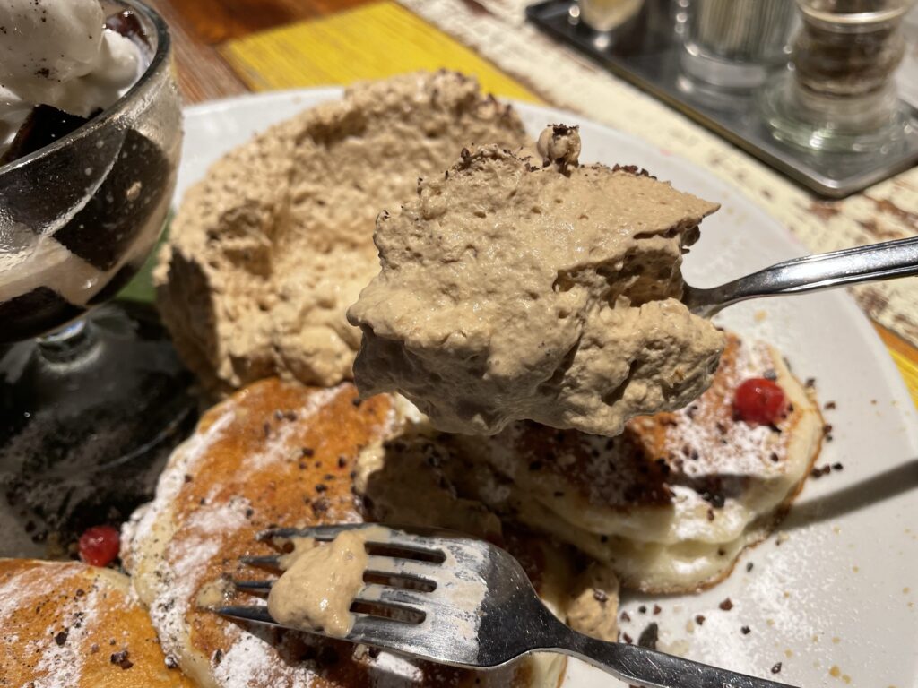 他のパンケーキのような派手さがなく、どちらかというと地味なパンケーキです。