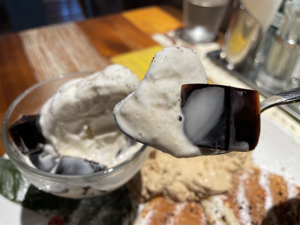 ハワイアンカフェ「コナズ珈琲」ではホイップクリームがたっぷり添えられ、旬のフルーツが盛り付けられたパンケーキが有名ですがオジサンには難易度が高すぎですよね。