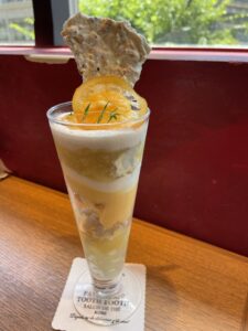 季節のフルーツが添えられている嬉しい本店限定のメニュー。