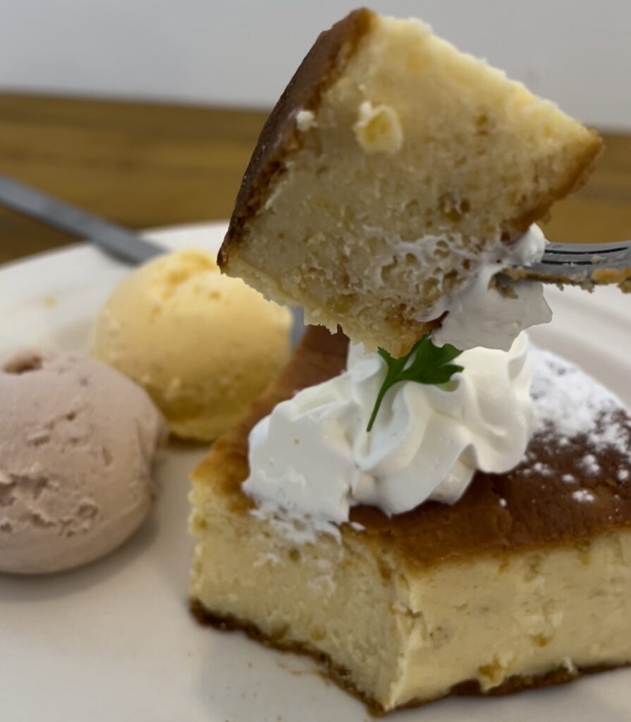 柑橘類フルーツのジャバラが含まれたチーズケーキ。