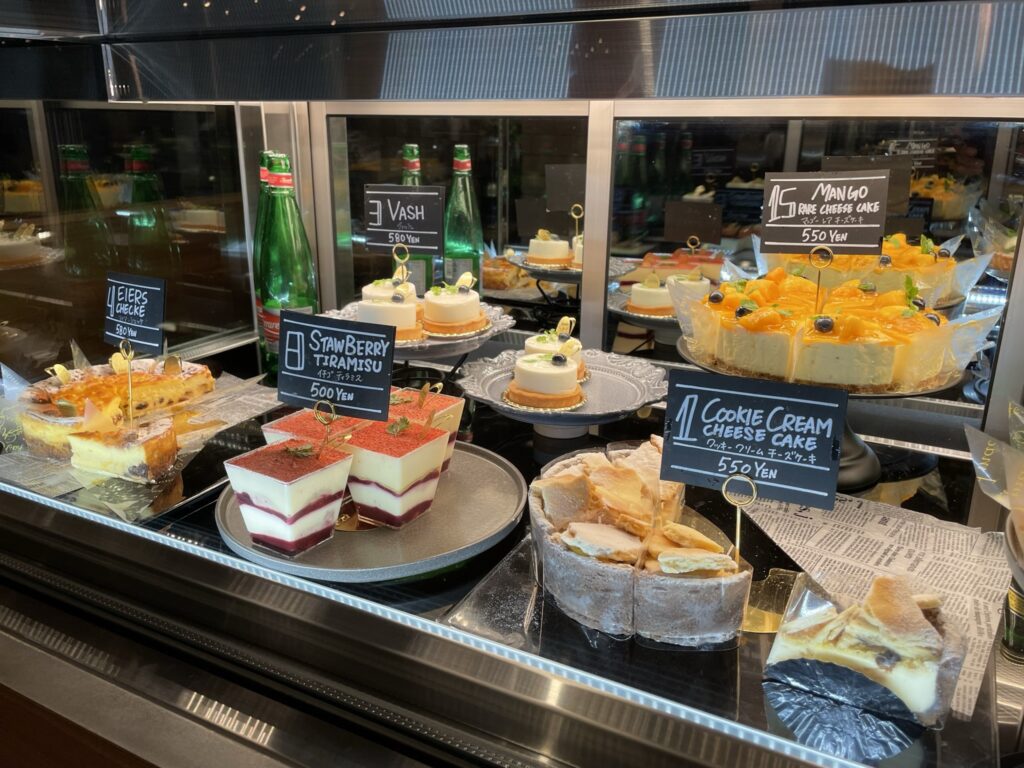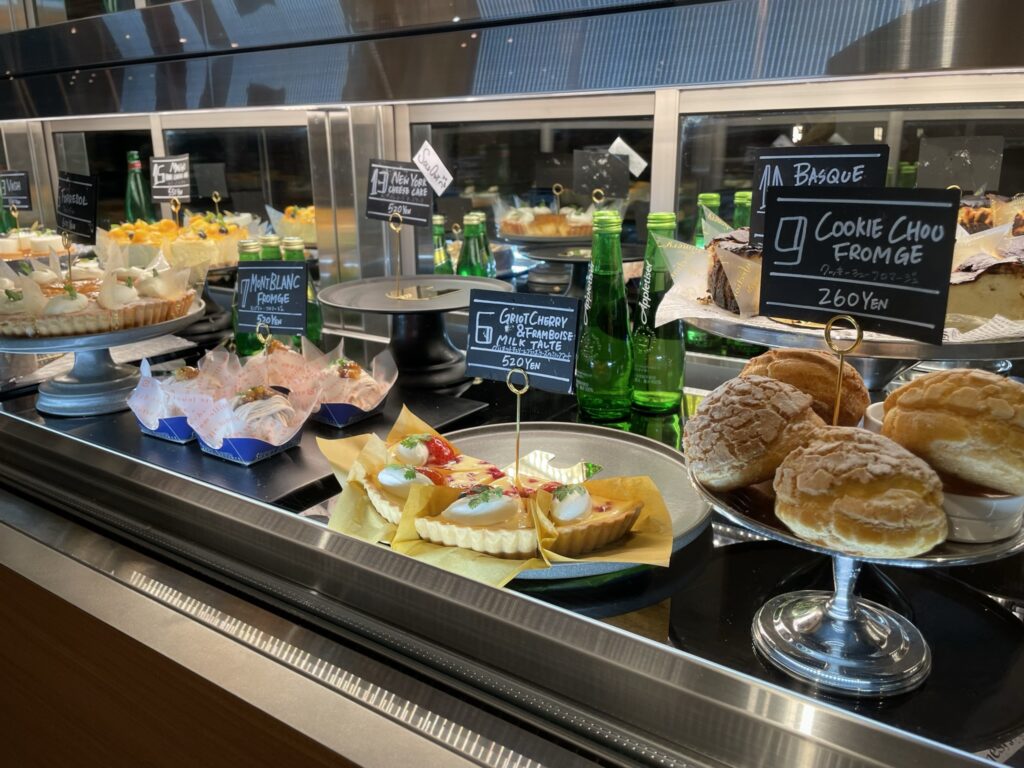 案内された席でメニュー表を見てドリンクを決めたら、ショウケースまでケーキを選びに行きます。