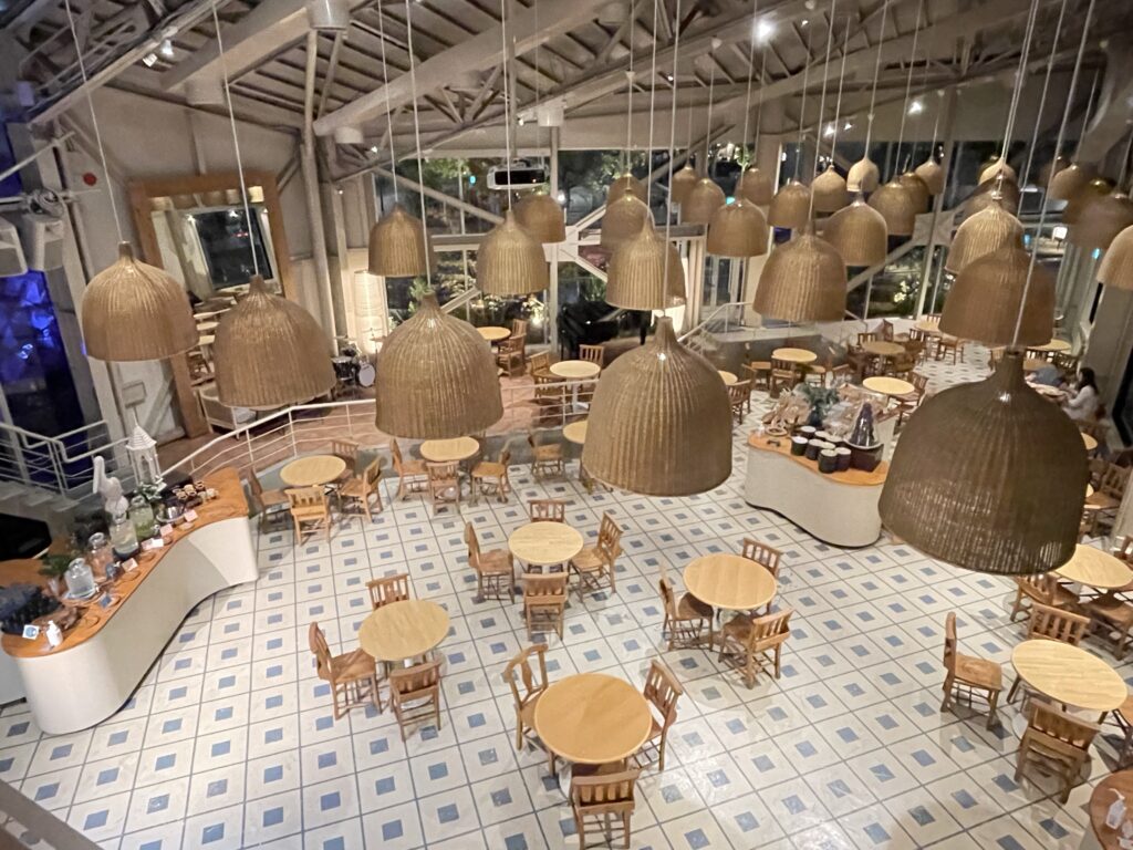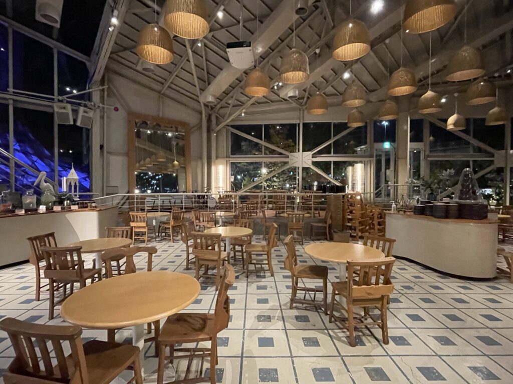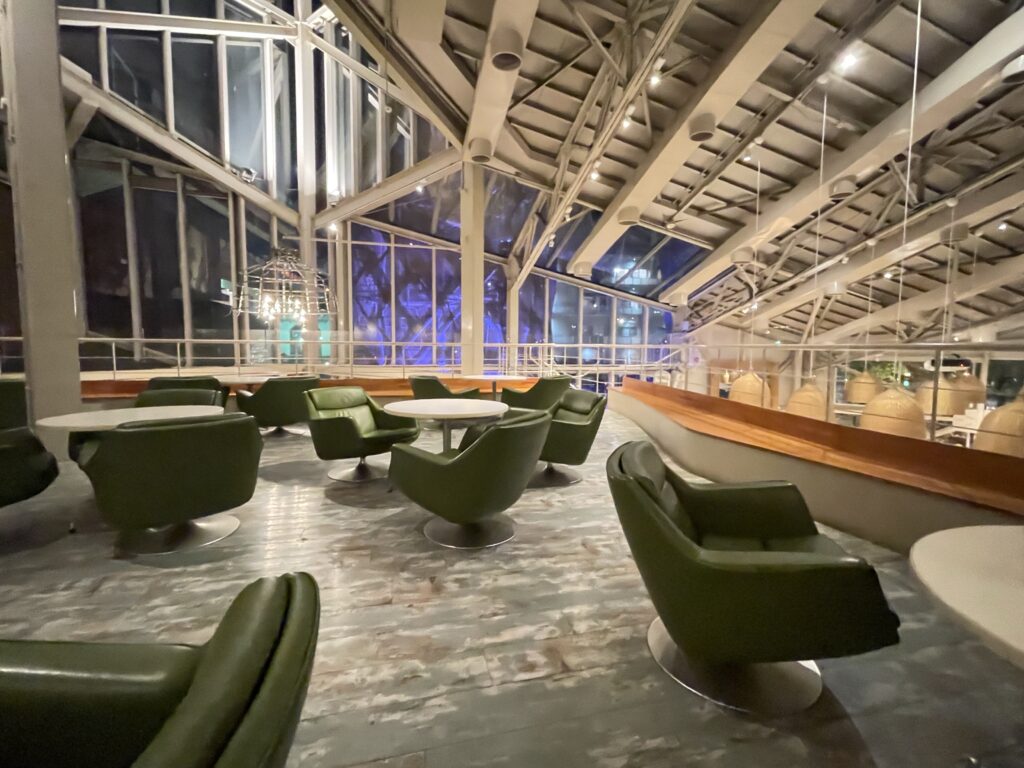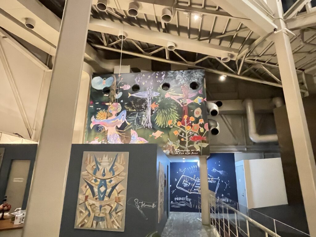 2階から下を眺めると天井が高く開放感があるのがわかりやすい、観光客にも自信を持って紹介できる空間です。