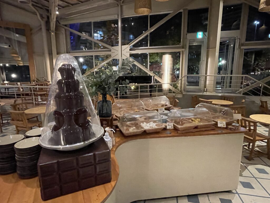 チョコレートフォンデュにはマシュマロと小さめのパンが用意されています。