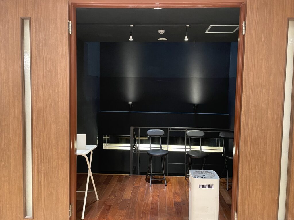 暗かった階段を上りイートインスペースに目を向けると、暗闇から表舞台を覗いているようです。