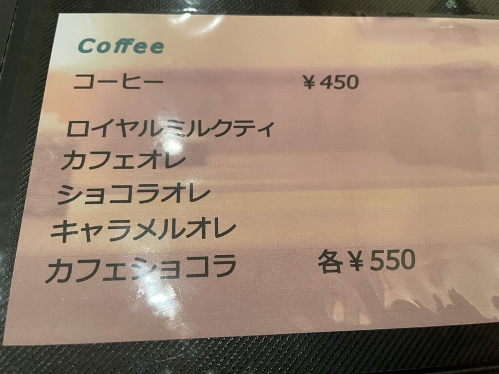コーヒーをカフェオレに変更するとケーキセットは900円 ➝ 1400円でした。