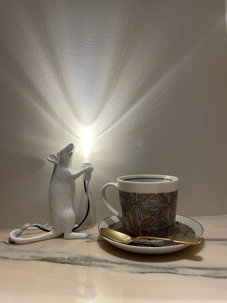 それぞれの席にローソクやネズミの照明が置かれていて可愛いですね、キュンです。
