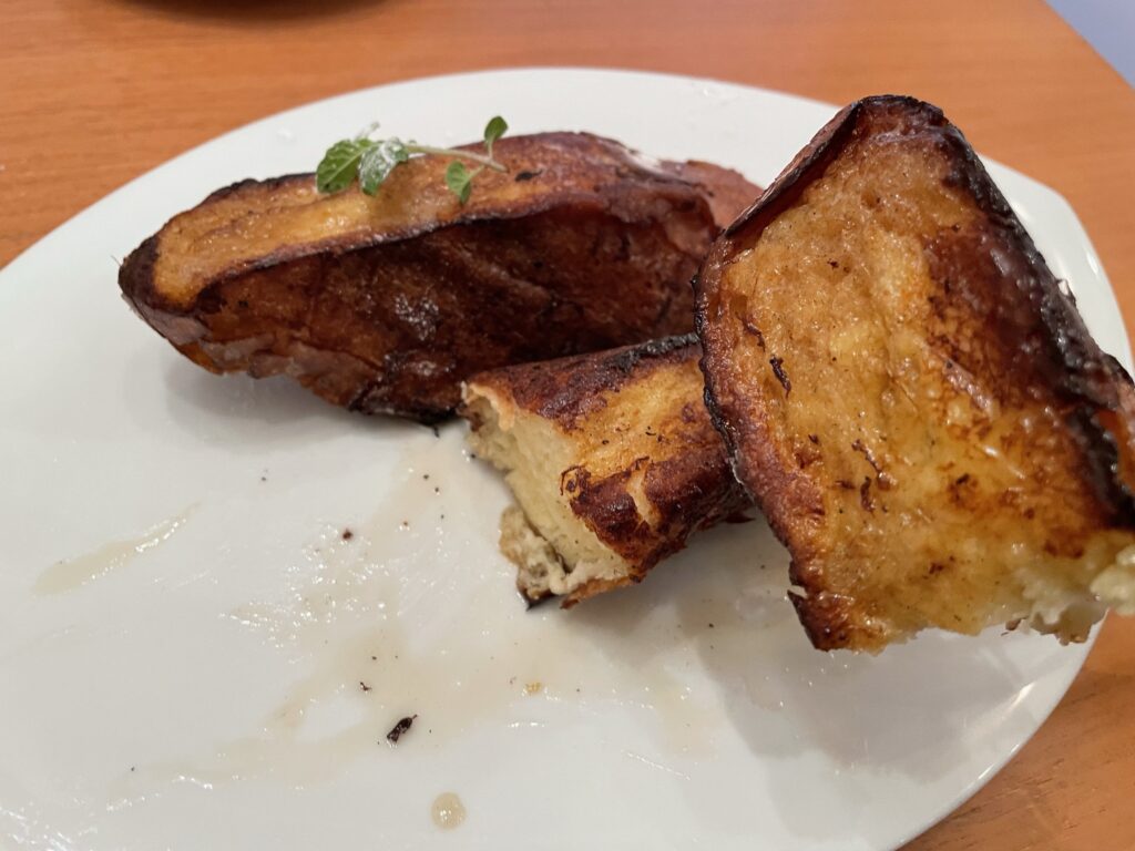外皮は固いけどシロップが染み渡っているのでカリカリ感は少なく噛み心地が良い、噛めば噛むほどパンの甘味とシロップの甘味が調和され意識高い系のスイーツになってくる。