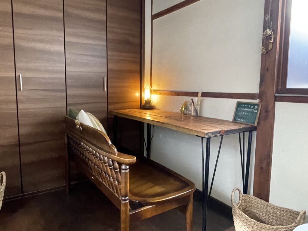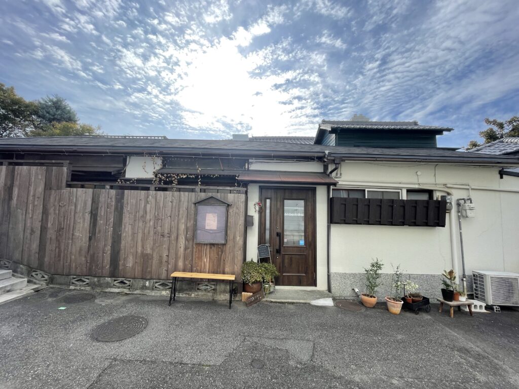 外観は1階建ての昭和チックな古民家で窓には木の板で目隠しをしています。