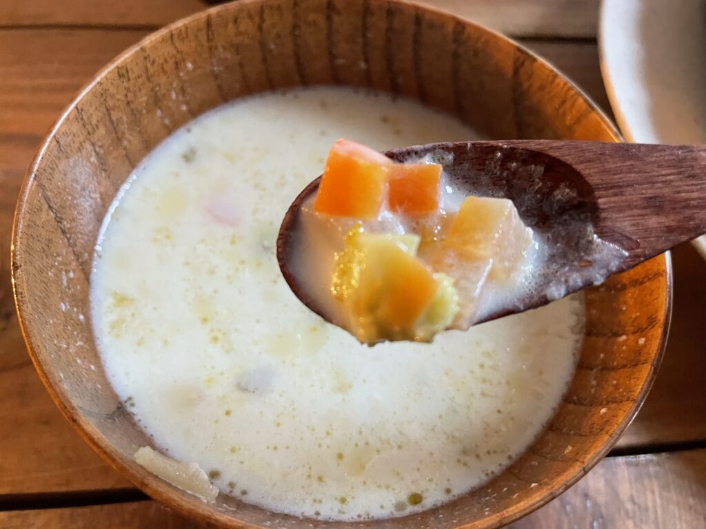 豆乳の味噌汁と聞くと拒絶反応を起こしてしまうのですが、いざ飲んでみると美味しい。