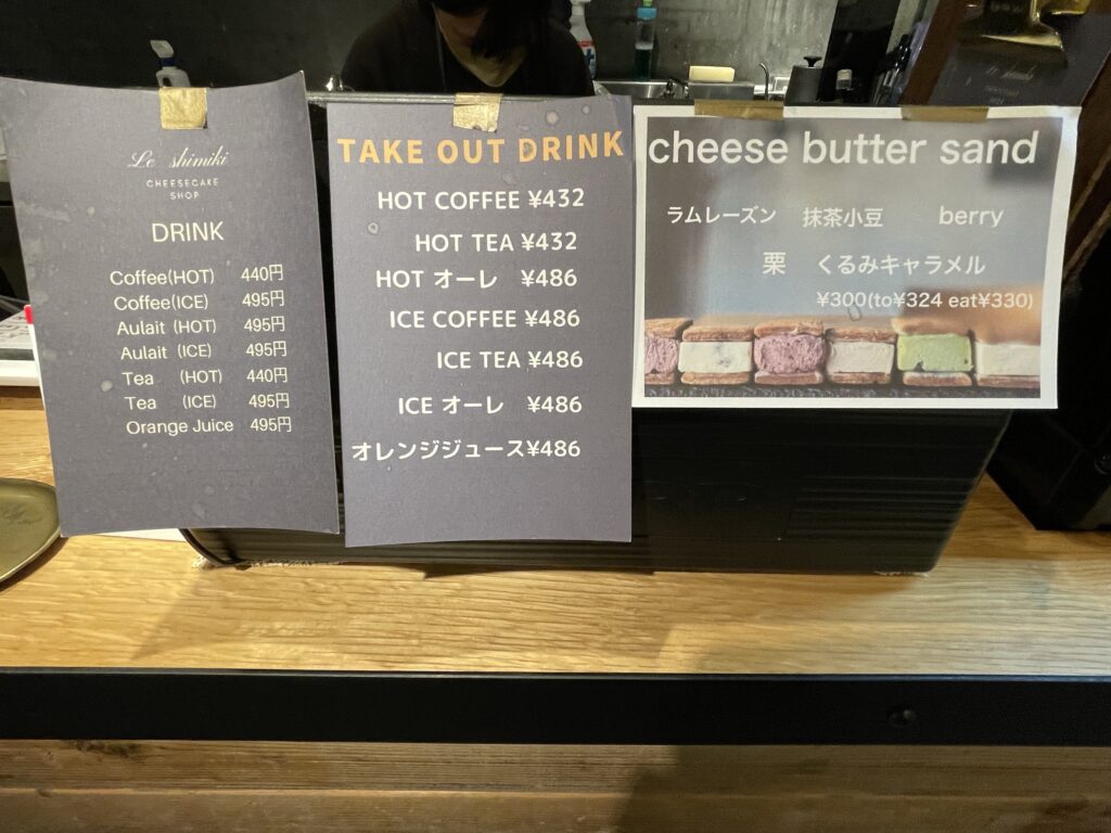 古びた雑居ビルの2階にお店を構えておりバスクチーズケーキやベイクドチーズケーキを主力商品とし季節に応じた幅広い種類のチーズケーキが販売されています。