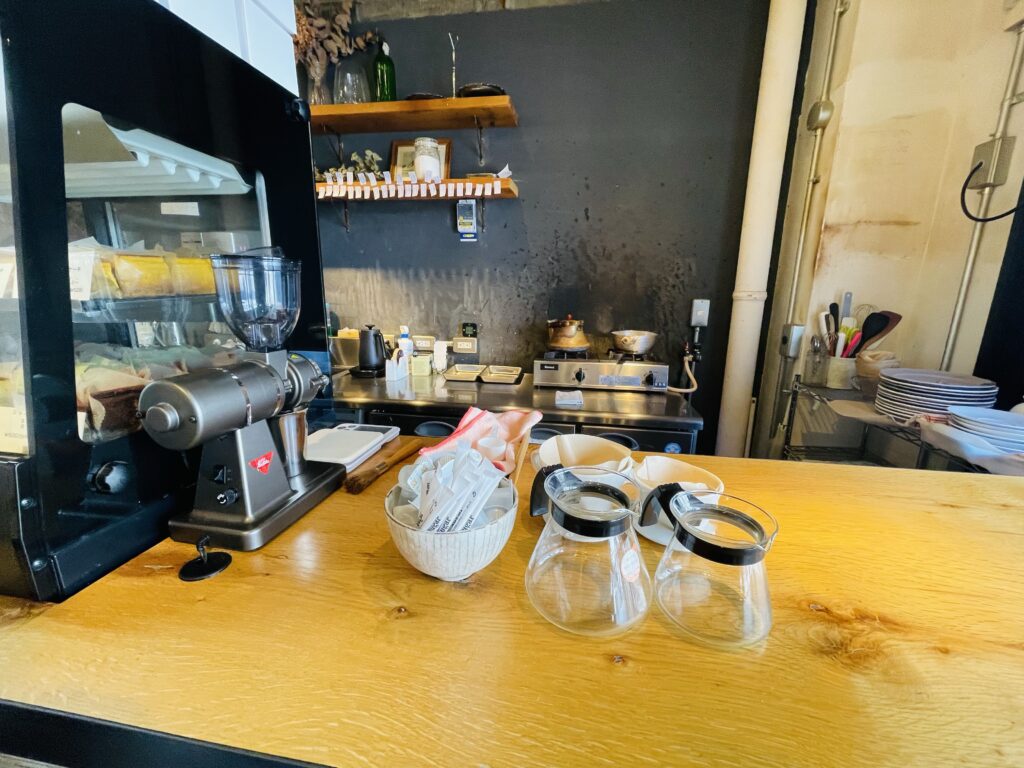 ほとんどがテイクアウトのお客さんですが大きな6人がけのテーブルが用意されておりカフェ利用もできます。