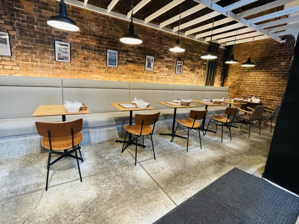 店内は、かつて倉庫として使われていたため天井が高く、広々とした空間が広がっています。