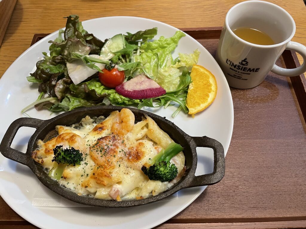エビのペンネグラタンを一口食べると、まず驚くのはエビのプリップリとした食感。
