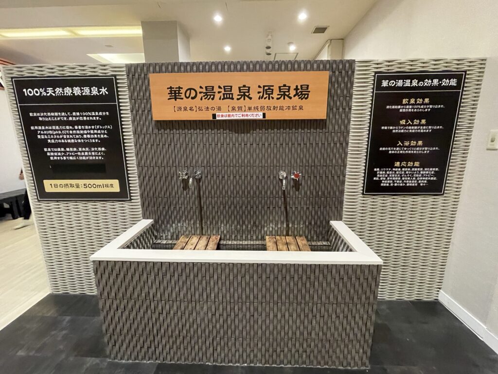 「天然ラジウム療養泉 華の湯」は、適度に利用することで健康に良い効果が期待される温泉が魅力の施設です。免疫力を高めたり、動脈硬化を予防する効果があると言われています。露天風呂は開放感があり、またエリア内には水道の蛇口から飲用可能な天然温泉が提供されています。