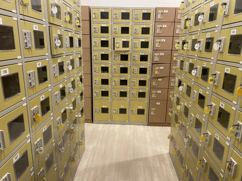 まず、靴箱に靴を入れ、100円を投入して鍵をかけます。