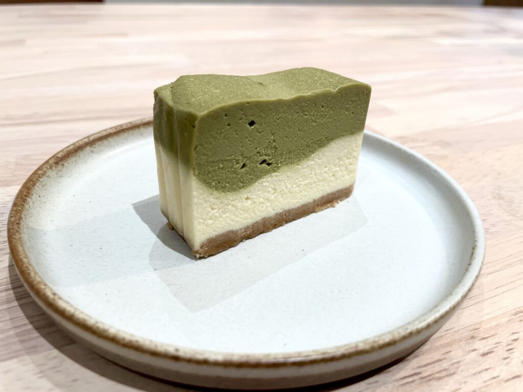 期間限定のピスタチオチーズケーキは、味わい深さと斬新な配色で注目を集めています。