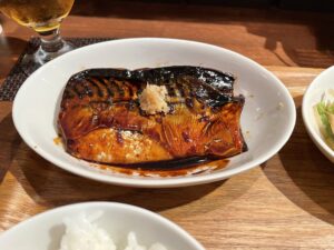 まず驚くのはその美しい焼き色。艶やかなタレが鯖の身にしっかりと絡んでおり、光の加減でさらに美味しさが引き立っています。