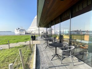 メリケンパークの心地よい潮風と共に、スタイリッシュな外観のスターバックスが目を惹きます。
