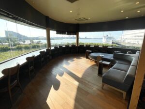 外の景色とスタイリッシュな内装が調和していて、忙しい日常を忘れさせてくれる場所です。