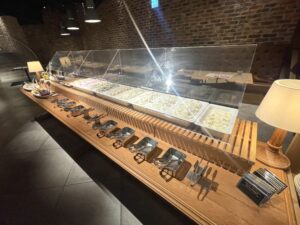 メイン料理に追加料金1000円のオプションで、ブッフェスタイルのフレッシュチーズが食べ放題に。ピンク色のチーズからクリーミーな白カビチーズ、濃厚なフェタ、マスカルポーネに至るまで、選りすぐられたチーズの豊富なラインナップが並び、味わいの探求を楽しむことができますよ。