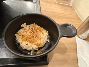 セットで付いてくる鉄板の上で焼かれたチーズめし。