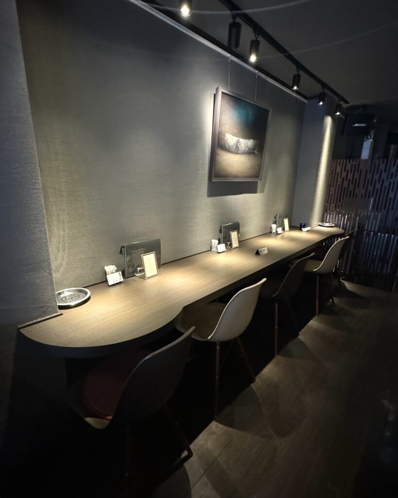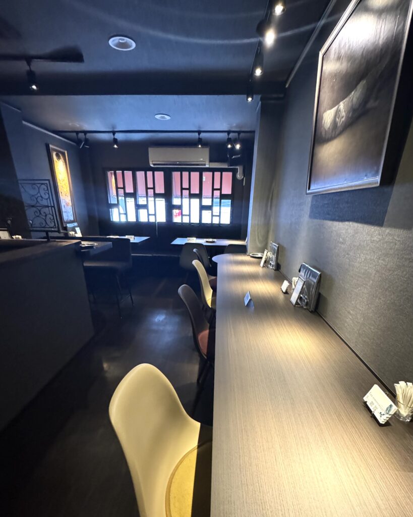 店内はダークトーンでまとめられ、高級感あふれるインテリアが特徴的。