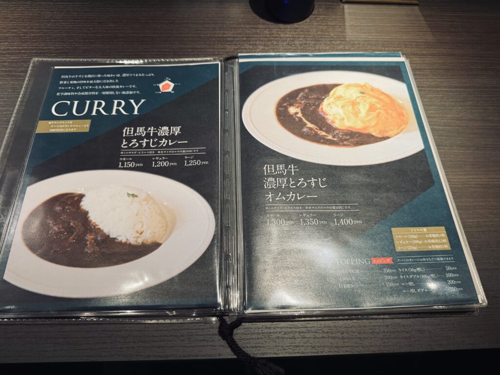 食事メニューは、「但馬牛の濃厚オムカレー」など、独自の味わいが楽しめます。