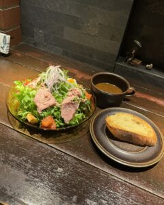 新鮮な水耕栽培の野菜、自家製レモンドレッシングの絶妙な味わい、そして絶品の但馬牛濃厚とろすじカレー。