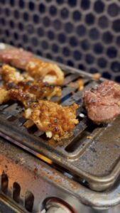 まずはハラミとカルビをオーダー。A5ランクならではの美しいサシと、口の中で溶ける脂の甘みが格別です。自家製のキムチや、ふっくら炊き上がった白ごはんが、お肉の旨味をさらに引き立ててくれます。冷えたビールとの相性も言うまでもありません。