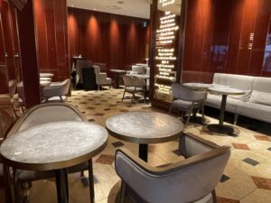 店内の壁は木目調の鏡面仕上げになっており、それを間接照明で照らし高級感を演出しています。